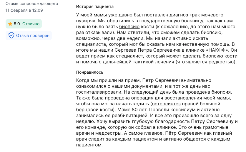 Отзыв дочери пациента с ПроДокторов