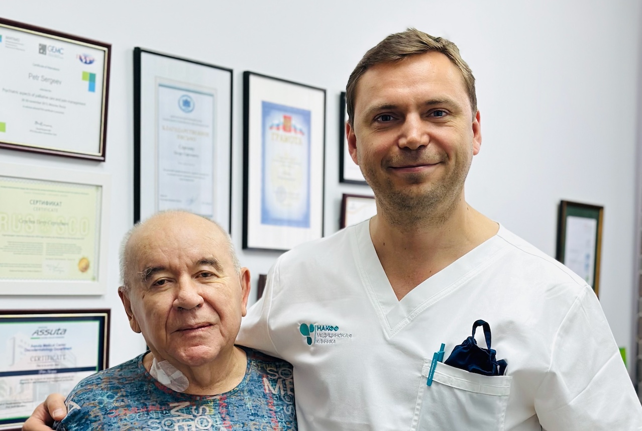 Мы провели первый курс гормонотерапии. Сегодня, на седьмые сутки после операции, Александр выписан домой.