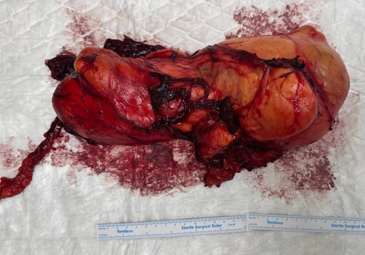 Диагноз: Высокодифференцированная липосаркома забрюшинного пространства с переходом на верхнюю треть бедра слева сТ4N0M0 - IB ст.